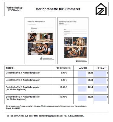 Berichtshefte für die Ausbildung - Bestellformular PDF 0,21 MB
