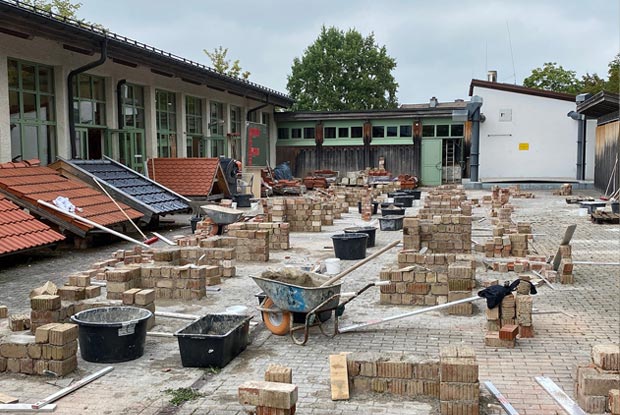 Hat vor kurzem ihr Berufsgrundschuljahr-Zimmerer gestartet: Christina Hartl übte mit ihren Klassenkameraden in der ersten Schulwoche das Mauern.