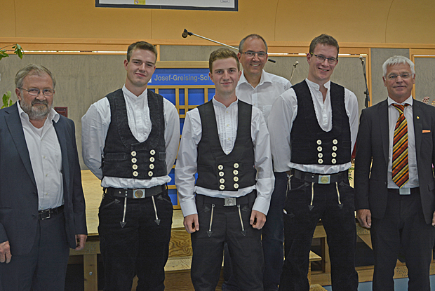 Josef Kilian Feser (links), Hermann Lang (4.v.l.) und Peter Aicher (rechts) zeichneten die Besten der Innungen aus.