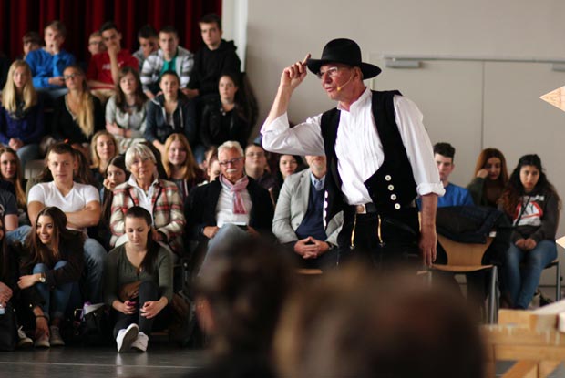 Mit großem Bedauern müssen wir mitteilen, dass wir unsere Theatertour 2020 mit Richard Betz endgültig absagen müssen. Die derzeit immer noch angespannte Corona-Lage, insbesondere an den Schulen, lässt keine andere Handlungsoption zu. Es ist jedoch bereits mit Richard Betz vereinbart, dass wir für 2021 erneut eine Tour mit ihm vorbereiten werden.
